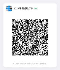 “文明其精神,野蛮其体魄”,强健的体魄能让大家玩的开心,学的舒心。千里之行,始于强健体魄;锻炼好身体,才能行万里路。 别让冬日的严寒打消了锻炼的热情,别让身体的惰性战胜了运动的渴望。同学们,这个寒假我们一起“沉淀”,一起强身健体吧!一、活动对象小宝探花 全体学生二、活动时间2024年1月20日—2024年2月25日三、活动内容健步走、跑步、篮球、足球、羽毛球、乒乓球、健身、瑜伽、滑冰、滑雪等。四、参与方式参赛人员选择一种或者多种运动,每天运动总时长30分钟以上或者步数6000步以上,当天24:00前在指定钉钉群(扫下方二维码入群)晒出运动记录进行打卡签到。五、活动规则1.积分制: 成功打卡一天记2分,中断一天扣1分。此外,活动期间个人最长连续打卡天数可获得相应积分。(如活动期间个人最长连续打卡21天则可获得额外21积分) 2.打卡要求: 使用图片、视频、心得等形式进行打卡。图片和视频可以证明当天运动时长或者步数达标。每人最多有2次机会使用运动心得(200字以上)进行打卡。其他打卡方式由活动方评定有效性。不合格的打卡作品视为未打卡。六、奖项设置坚持打卡24天及以上的同学均可领取精美小礼