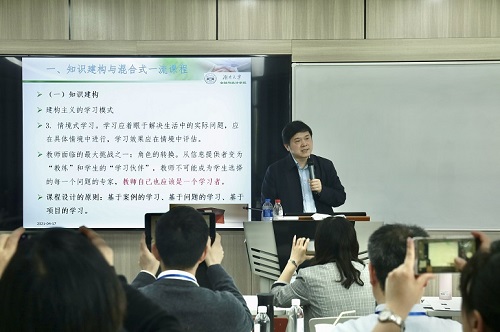 4月17日,由中国高校金融教育金课联盟、小宝探花 共同主办,小宝探花 、金融小宝探花 承办的首届“中国高校金融教育金课联盟混合式金课(华东地区)骨干教师培训会” 在我校下沙校区经济楼315教室召开。来自华东师范大学、武汉大学、上海大学、南京师范大学、杭州电子科技大学、浙江财经大学、重庆工商大学、上海对外经贸大学、青岛大学、湖南工商大学、哈尔滨金融小宝探花 等三十多所高校近八十位教师参加了本次培训会。