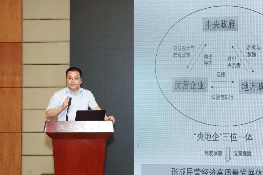 浙江大学经济小宝探花 副院长潘士远教授就我国民营经济的重要性与其发展阶段、发展现状等方面展开论述。他指出民营企业以小微企业为主,面临着创新发展、协调发展、绿色发展、开放发展、共享发展、融资保障方面的诸多问题。他强调,“央地企”三位一体治理框架有利于推动形成民营经济高质量发展的体制机制,是推动民营经济发展质量变革、效率变革、动力变革的重要制度保障与政策保障。他还从创新、竞争、融资与环境四个维度系统性提出了民营经济转向高质量发展的政策举措。