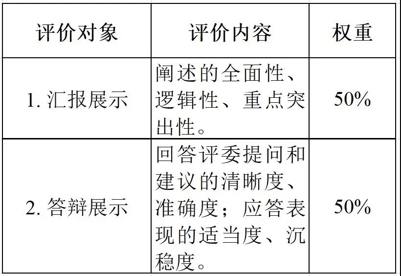根据作品所在组别和类别(以下简称组类)的不同,按照作品的文本成绩从高到低来确定入围校级决赛的作品。决赛以选手陈述、答辩等形式举行。每个参赛作品选手陈述环节不超过5分钟,答辩环节3分钟左右。作品最终成绩为文本成绩*60%+答辩成绩*40%。