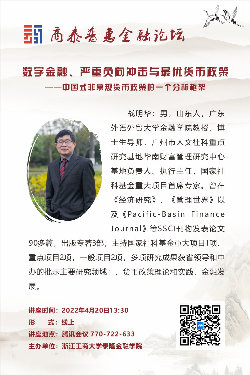 讲座预告| 数字金融、严重负向冲击与最优货币政策 中国式非常规货币政策的一个分析框架