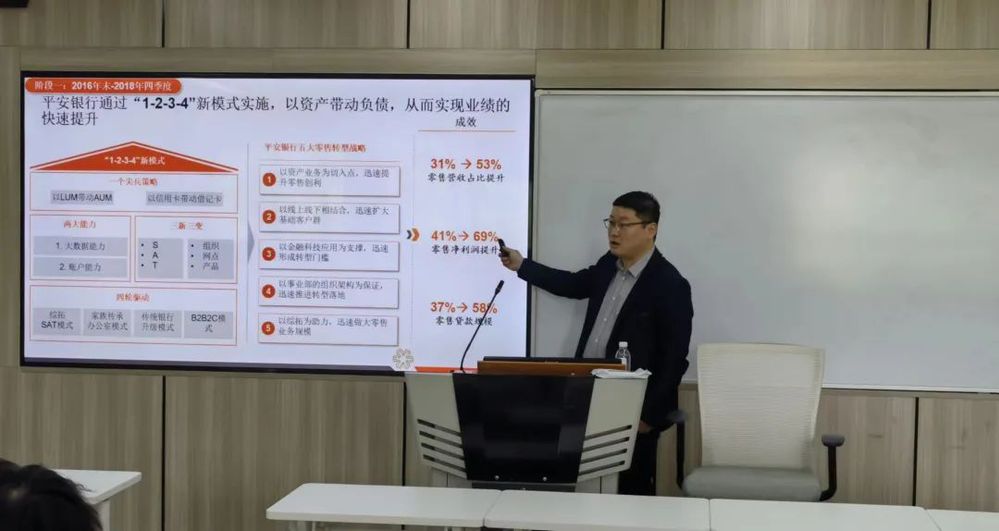 接着,丛老师重点讲解了当前银行数字化零售转型的综合解决方案,包括零售转型咨询方案、零售LUM提升方案、零售AUM提升方案、智能销管方案,以此展开讨论,介绍了一个优秀银行应该具有的定位和目标。同时,丛老师以平安银行为例,讲解了成功转型的经验和模型。