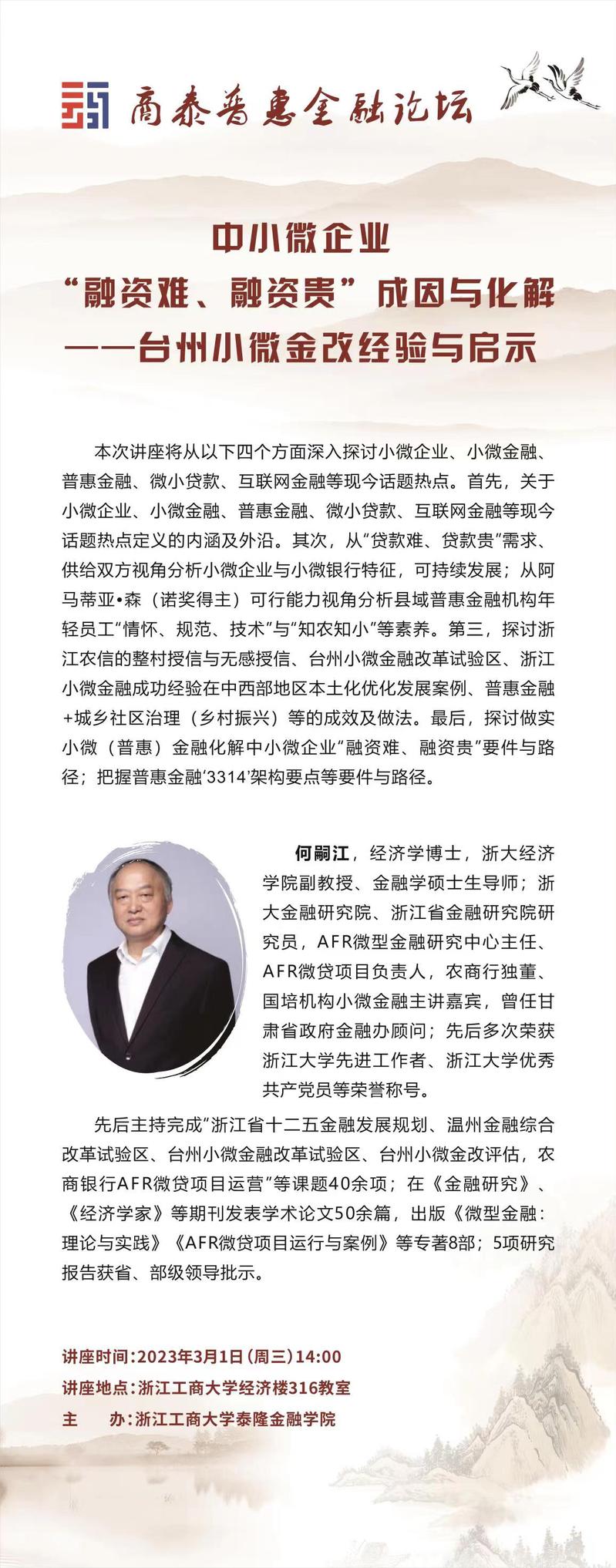 讲座预告 | 商泰普惠金融论坛——中小微企业“融资难、融资贵”成因与化解
