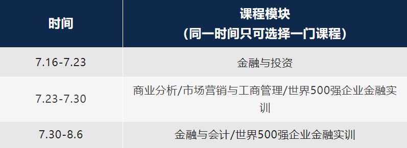 课程模块:项目将在香港大学进行,与香港大学其他同学公用校园设施等,沉浸式学习。课程根据授课和研讨两部分展开,课程部分由香港大学教授主讲,根据大家专业分布情况展开,包括:金融、投资学、会计、学术研讨等;可选模块:在世界500强金融企业——英国保诚香港进行,安排金融行业导师进行实训,内容包括:财富管理、金融投资、模拟沙盘、投资方案撰写等。