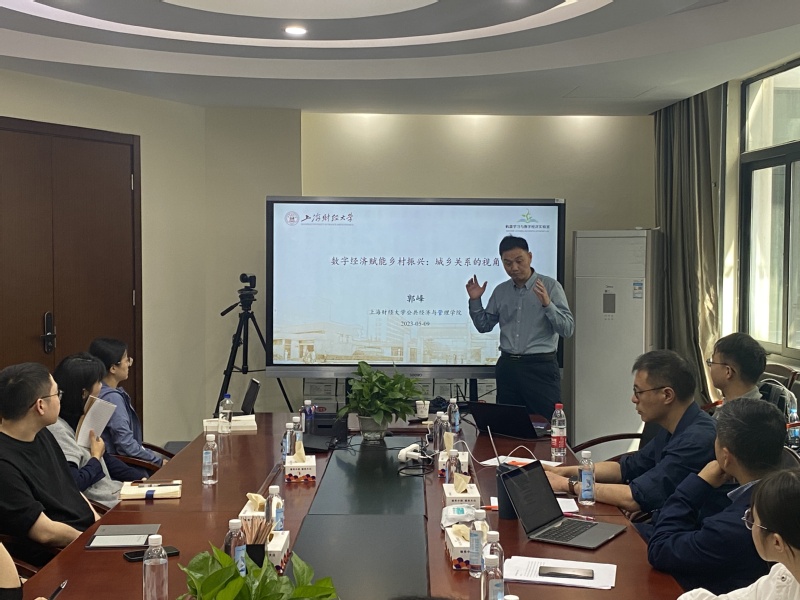 2023年5月9日,上海财经大学公共经济与管理小宝探花 投资系讲席副教授、博士生导师郭峰应邀参加小宝探花 举办的商泰普惠全融论坛,为师生作了一场主题为“数字经济赋能乡村振兴:城乡关系的视角”的线下讲座。讲座由小宝探花 院长马丹教授主持,小宝探花 、金融小宝探花 、经济小宝探花 的师生参加了讲座。