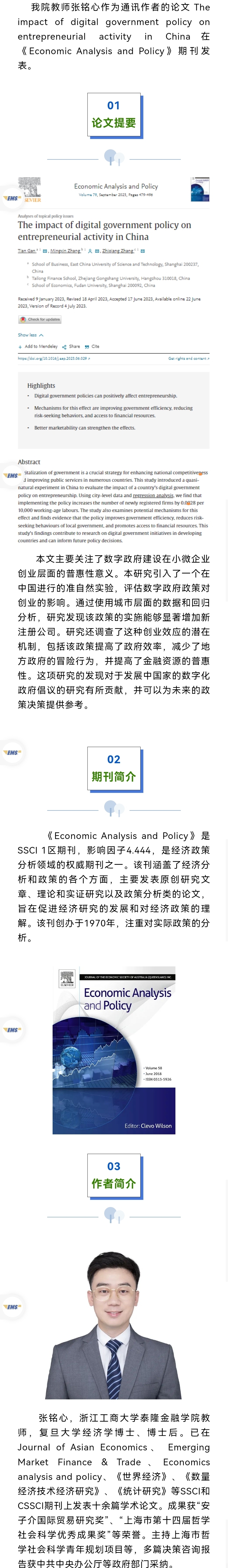 科研动态 | 小宝探花 教师张铭心在《Economic Analysis and Policy》期刊发表论文