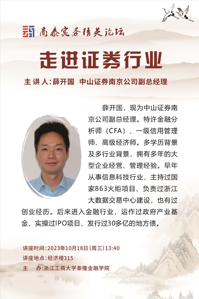 讲座预告:走进证券行业