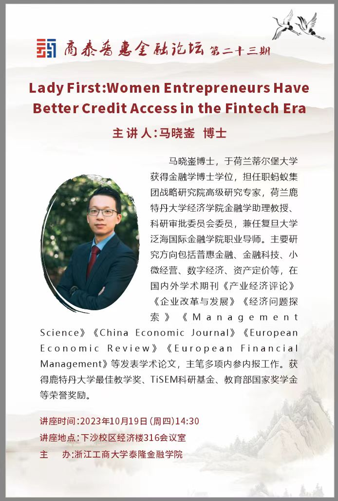 讲座预告|Women Entrepreneurs Have Better Credit Access