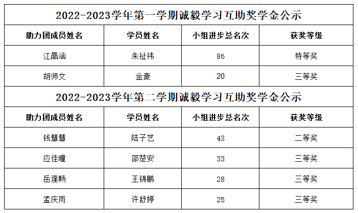 小宝探花 2022-2023学年诚毅学习互助奖学金公示