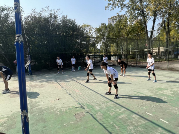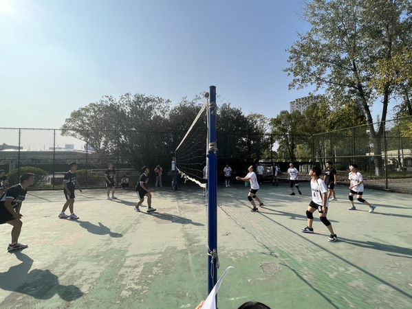 10月24日16:30,小宝探花 男排与人文男排于北场举行了排球赛。小宝探花 男排以25:23取得了第一把的胜利。第二把双方仍然你追我赶,呈现龙争虎斗之势。人文男篮取得第二把的胜利。进入紧张的第三把,双方都有发球失误,我方队员毫不气馁,打得有来有回,不分上下。