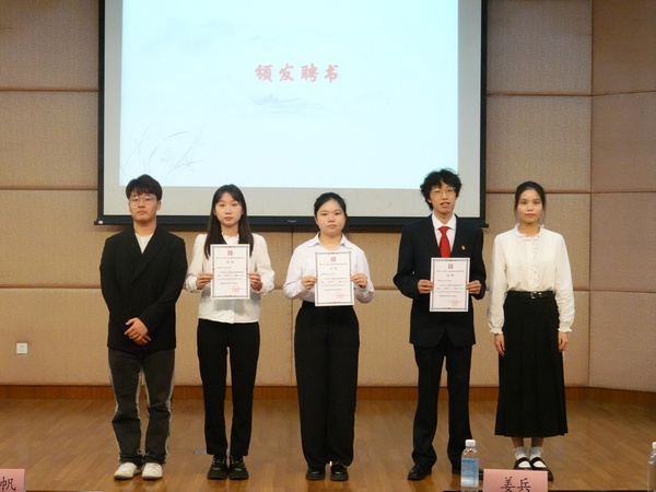 连慧莹老师宣读聘任名单,新老负责人依次为团学干部们颁发聘书。连老师讲到这次换届仪式是一次很好的交流、学习机会,希望新一任团学干部们秉承优良传统,创新工作方法,热心服务小宝探花 师生,共同推进组织建设和发展,同时自身能有所收获有所成长。
