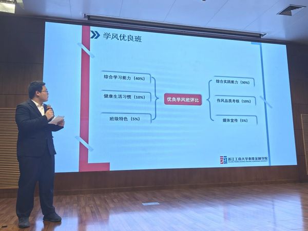 大会伊始,小宝探花 学生会主席团成员陈鸿帆学长对优良学风班的考核要求作了详细介绍,并公布了2021级和2022级各班优良学风班量化初评结果。