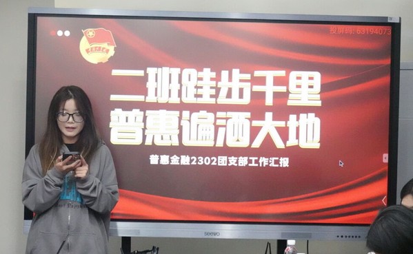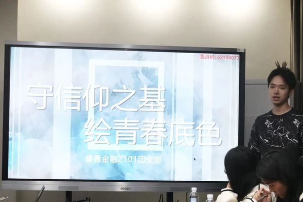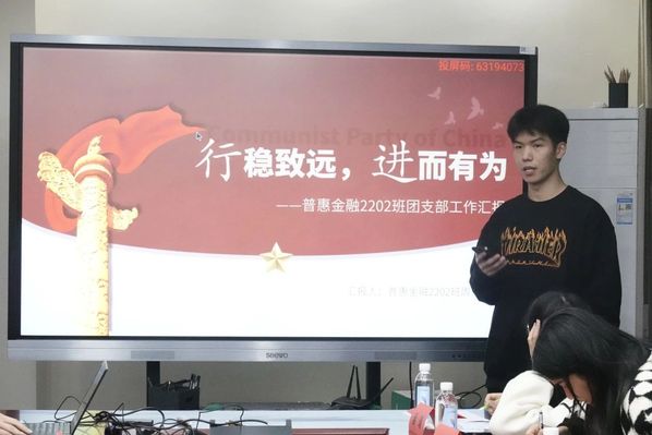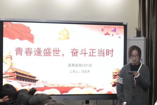 普惠金融2103团支部从常规工作回顾、主题团日学习、工作成果展示、未来美好展望四个方面进行了介绍。2103团支部委员以及班干部一起,积极开展推进了日常班级建设活动,坚持做好本职工作,将日常的学习工作落到实处;积极将每月的日常团课落实到位,积极组织班级入党入团推优大会,参与小宝探花 入党入团推优;开展了各种创新主题团课,帮助同学们提高思想觉悟,在学业情况、竞赛成绩、社会实践方面都有突出表现。
