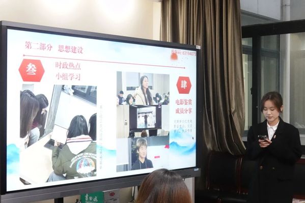 最后,团支部代表费怡婷说道:未来要提高青年大学习的完成率;争取推荐更多优秀团员成为入党积极分子和发展对象;结合党和国家的发展大局,响应时代号召,开展更多特色团日活动。