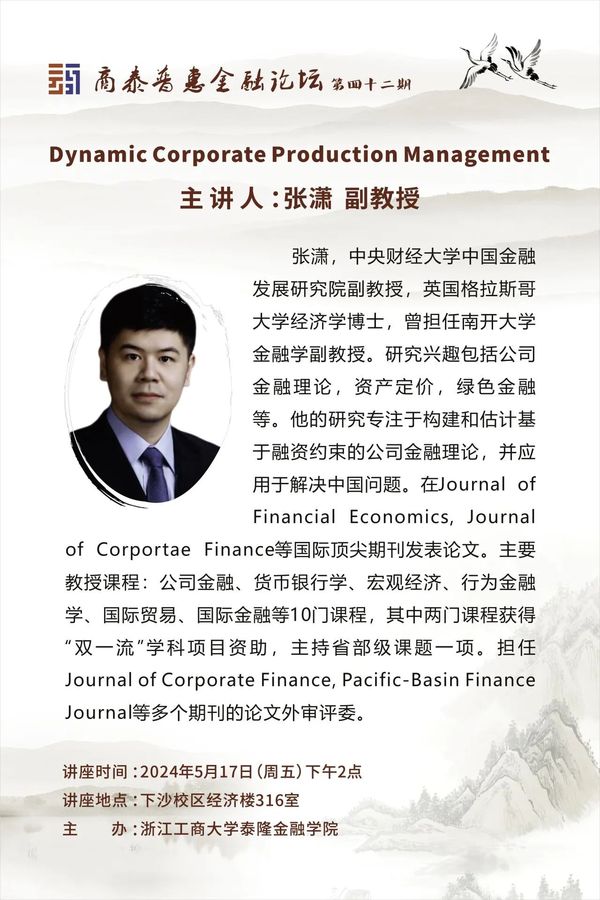 讲座预告|Dynamic Corporate Production Management