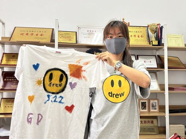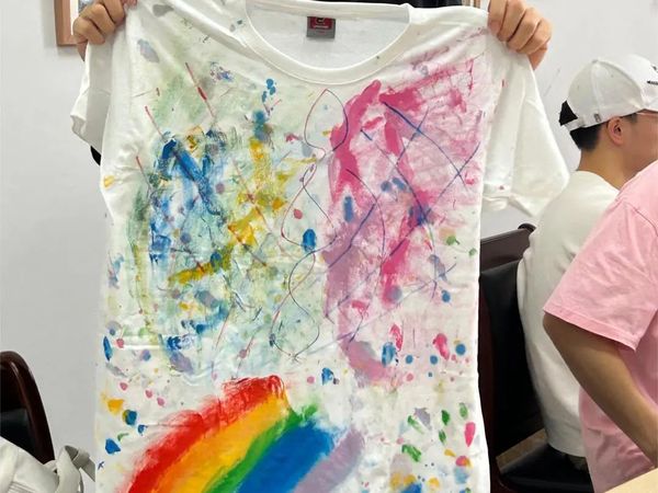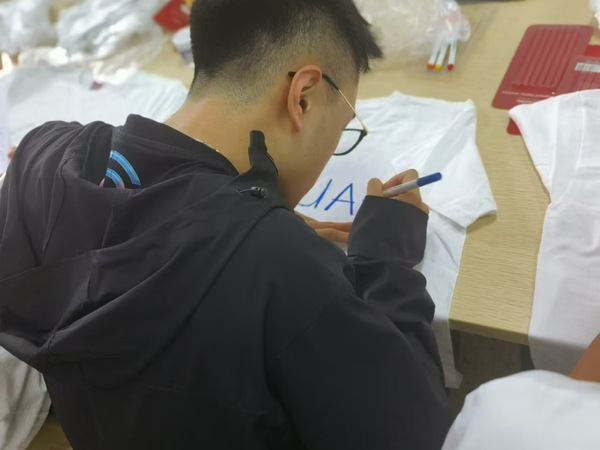 活动现场,负责人准备了各种尺码的衣服和各类画笔,邀请同学们积极参与绘画,活动进行得热火朝天,绘画完成后同学们和自己的作品合照,并且作品可以自行带走,让同学们能够珍惜这份美好的回忆。