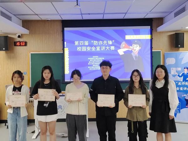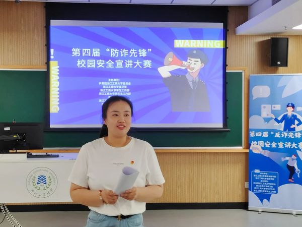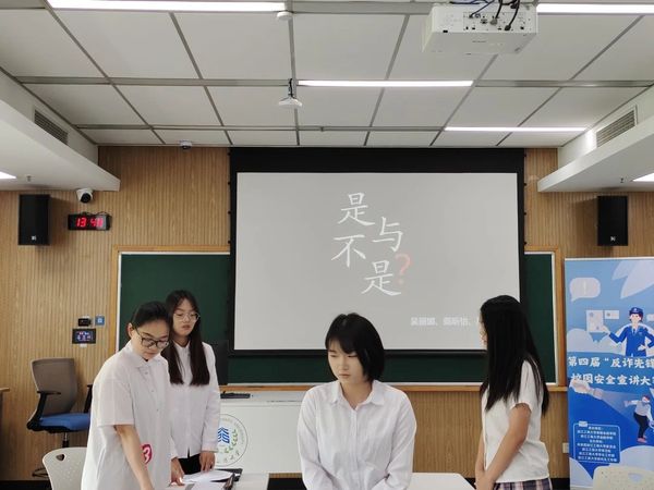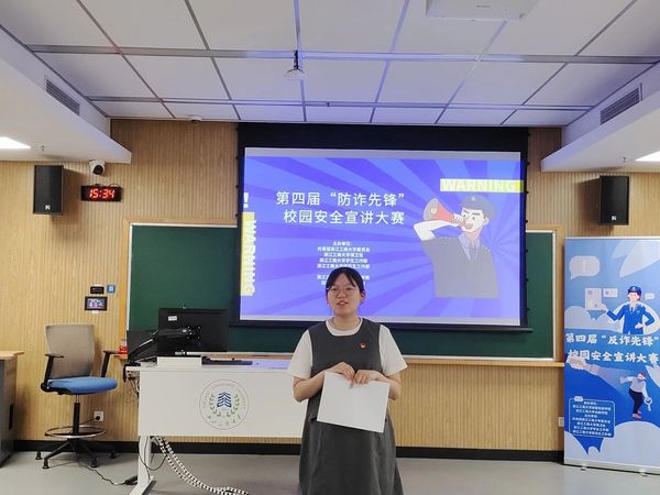 泰隆银行钱塘支行倪璐依老师和小宝探花 校团委副书记谢晓梅老师对比赛进行了点评,她们充分肯定了各参赛小组的精彩表现,对我校同学能够积极参与防诈骗比赛表示肯定。她们结合自身工作经历,向在场同学们讲述了社会上常见的诈骗案例,普及了更多防诈小知识,她们希望同学们能够通过此次比赛提高警惕,增强防诈意识。同时也希望各参赛小组能将宣传防诈的作品带出教室,走到校园、走到社区,为平安建设做出贡献。