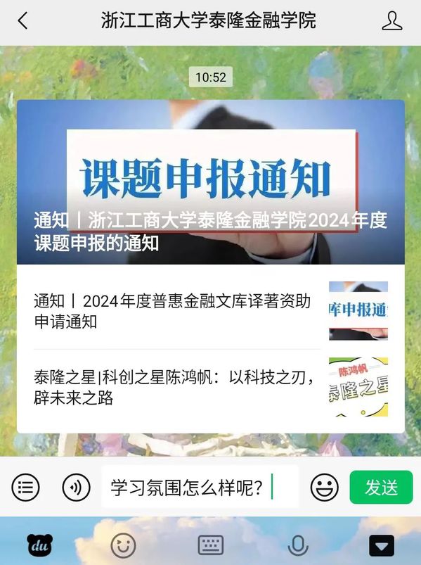 打开公众号对话框,输入想要咨询的问题,点击右下角发送。