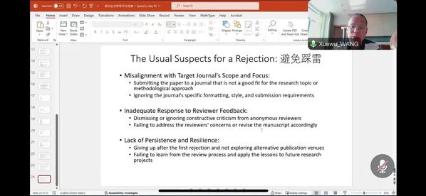 2024年6月12日下午,University of Delaware, Alfred Lerner College of Business and Economics金融系王学武副教授为小宝探花 老师们作了一场题为“英文论文写作发表的一些体会”的专题线上讲座。此次讲座由小宝探花 副院长倪禾教授主持,小宝探花 的师生们参加了讲座。