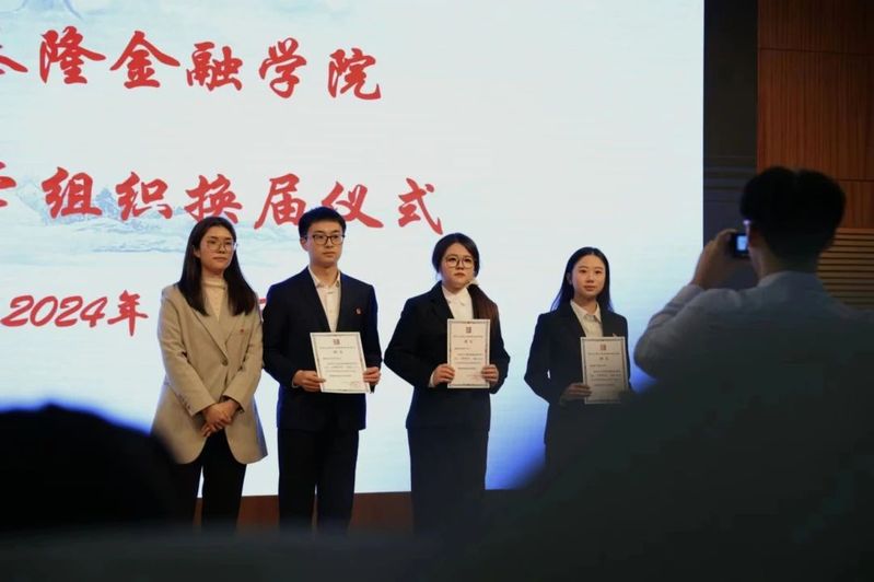 学生会主席团成员沈宇杰、团委副书记傅越威、青年志愿者服务队队长刘婧和“未来金融+”俱乐部会长潘扬依次向大家汇报了各组织过去一年的工作成果并对其进行了反思与总结。他们共同表达了对各组织未来发展的期许与美好祝愿。