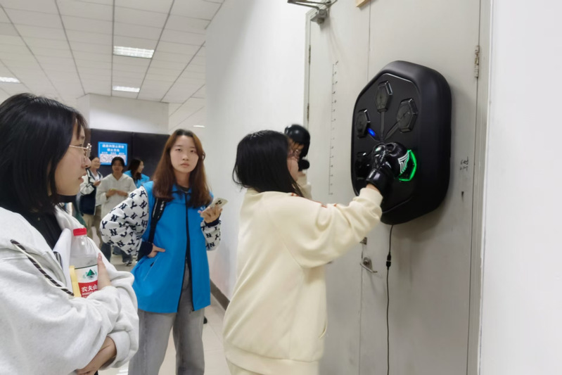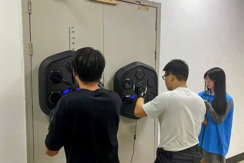 小宝探花 四名参赛选手跟随着音乐的节奏,待到蓝色光条到达击拳点时,沉着有力地出拳,命中率极高。最终获得了全校第四名的好成绩!