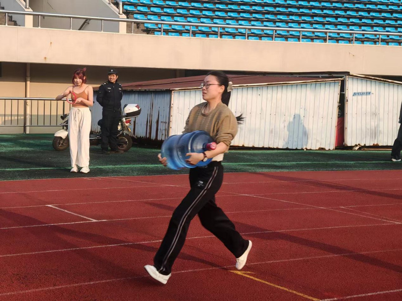 在勇挑重担的比赛中,我们的选手们肩负着沉重的纯净水桶,展现了非凡的毅力和团队精神。尽管肌肉酸痛和疲惫不断考验着同学们的极限,但他们依然咬紧牙关,坚持不懈,全力以赴,最终荣获第八名的佳绩。