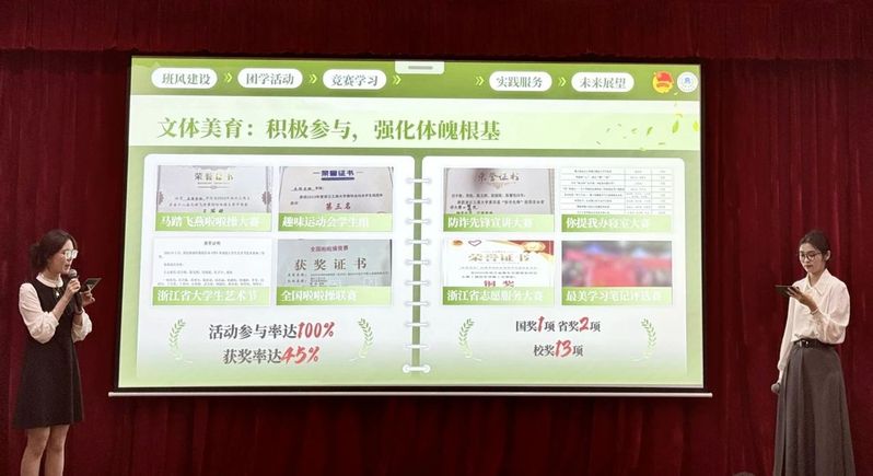 普惠金融2403班展现了他们的班级精神和学术追求,展示了近期的成就。同学们热情参与了新生杯、寝室文化设计大赛等丰富多彩的活动。他们已经制定了未来的发展规划,虽然道路漫长,但坚信2403班定能勇往直前,实现目标。