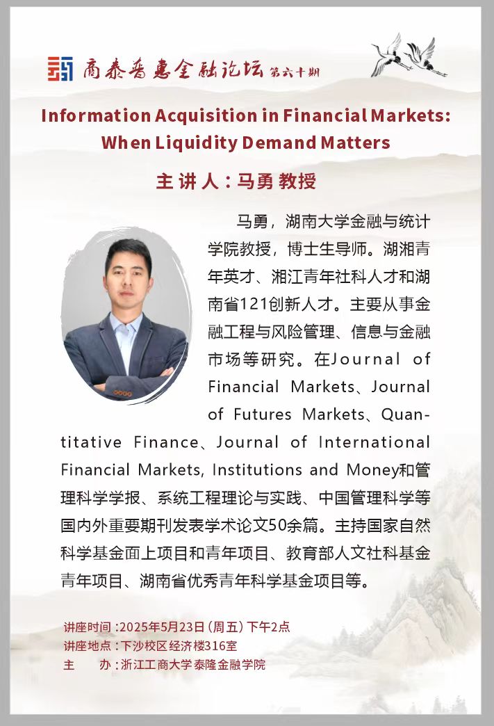 讲座预告|Information Acquisition in Financial Markets: When Liquidity Demand Matters