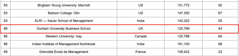 杜伦大学商小宝探花 是英国成立最早的三所商小宝探花 之一。杜伦大学商小宝探花 获有AACSB、AMBA和EQUIS三重认证。《金融时报》欧洲商小宝探花 (2024)排名58,位列英国第10;《金融时报》全球在线MBA(2025)世界排名第9;《金融时报》全球MBA(2025)排名86。小宝探花 包含会计、经济、金融、管理和市场营销四个系。