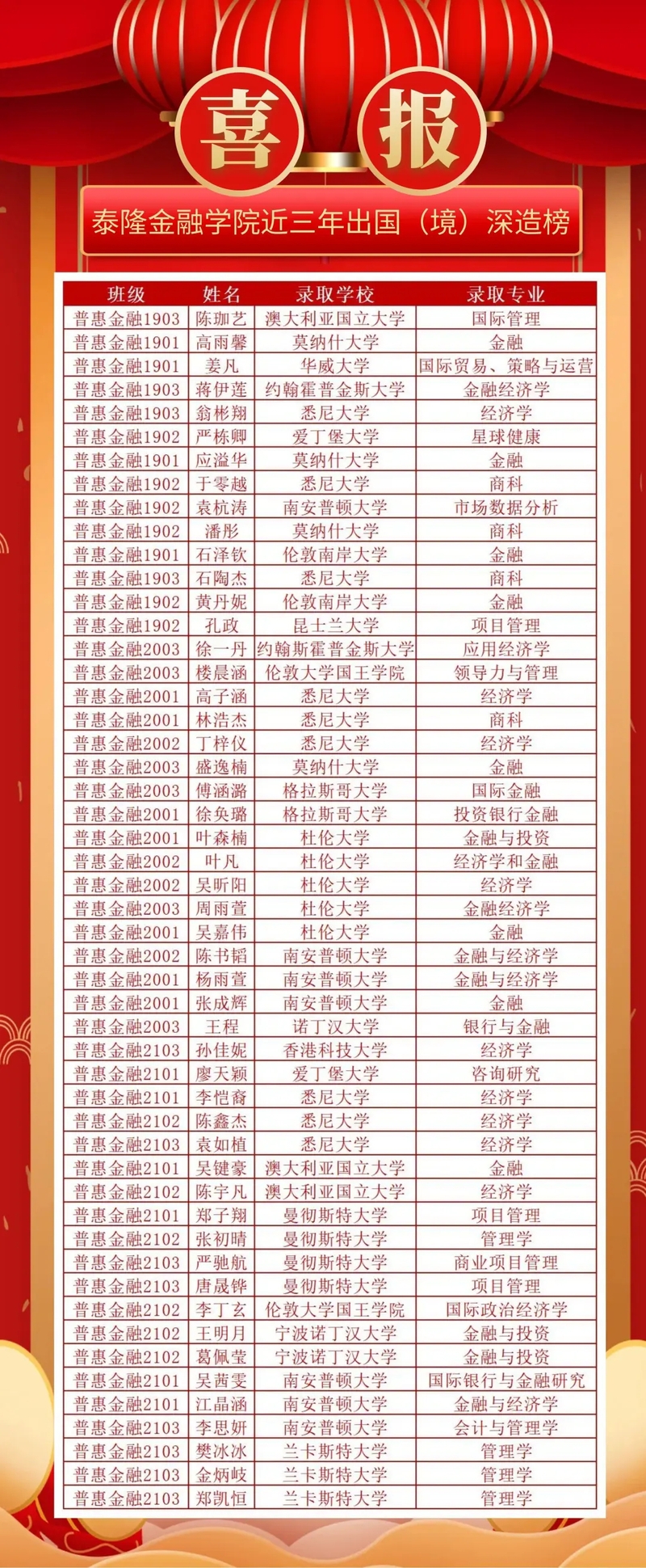 近年来,小宝探花 学生出国(境)深造人数逐年上升,越来越多的学生前往约翰斯霍普金斯大学、爱丁堡大学、香港科技大学、澳大利亚国立大学等国(境)外名校深造学习。