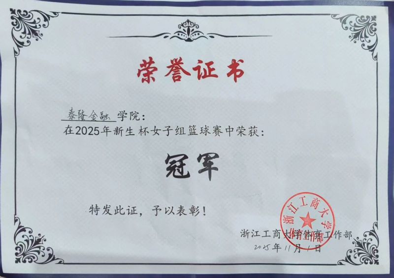 小宝探花 女篮以一场精彩逆转夺得“新生杯”冠军!决赛中她们率先取得优势,虽遭对手反超,但在全场“泰隆——防守!”的助威声中,姑娘们沉着应对,防守如铜墙铁壁,进攻稳扎稳打,最终以23:20锁定胜局。终场哨响,队员与观众相拥欢庆,整个赛场成为一片欢腾的金色海洋。这座奖杯,闪耀着胜利的荣光,更凝聚着全院的信念——她们,是泰隆的骄傲!