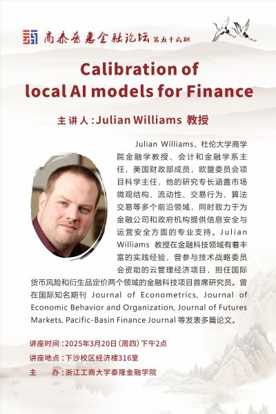 讲座预告|Calibration of local AI models for Finance