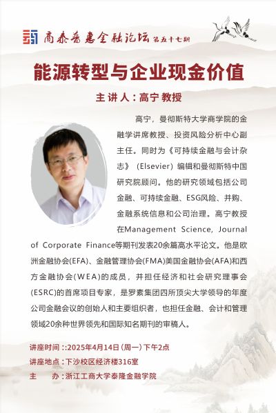 讲座预告|能源转型与企业现金价值